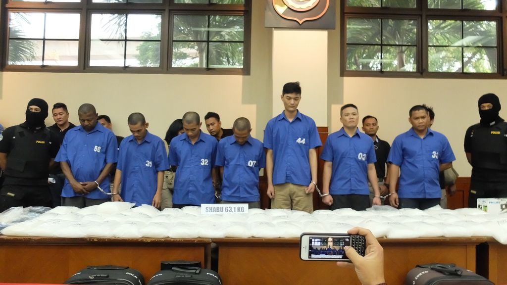 Anggota kepolisian yang menjaga para tersangka lalu membuka penutup wajah itu. Kepala para tersangka yang tadinya tegak lurus ke depan seketika jadi tertunduk. Kecuali beberapa tersangka yang merupakan WNA Taiwan.Tito menyatakan masalah narkoba menjadi masalah besar yang merusak generasi bangsa. Tito memerintahkan jajarannya baik tingkat Mabes Polri hingga Polsek untuk bekerja keras memberantas narkoba.