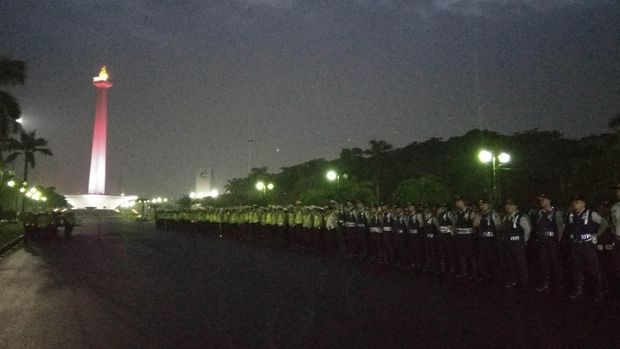 Jakarta - Aparat gabungan Polda Metro Jaya serta Dinas Perhubungan dan Transportasi DKI Jakarta menggelar apel terkait pemberlakuan sistem ganjil-genap di kawasan Monas. Apel gabungan ini dipimpin Kasie Laka Lantas Subdit Gakkum Ditlantas Polda Metro Jaya, Kompol Samakun pada pukul 05.30 WIB, Selasa (30/8/2016). Apel digelar untuk memastikan kesiapan personel dalam pemberlakuan sistem pelat kendaraan ganjil-genap.Direktur Lalu Lintas Polda Metro Jaya, Kombes Syamsul Bahri mengatakan ada 4 ribu personel gabungan yang mengikuti apel. "Hari ini apel kita adalah menuju pelaksanaan yaitu penindakan ganjil-genap setelah melakukan sosialisasi selama satu bulan," kata Syamsul dalam sambutannya pada apel.
