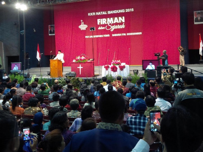 Bandung - Wali Kota Bandung Ridwan Kamil menepati janjinya memfasilitasi kegiatan ulang Kebaktian Kebangunan Rohani (KKR) Natal di Gedung Sabuga. KKR pimpinan Pendeta Stephen Tong ini sempat terhenti oleh sekelompok orang dari ormas.